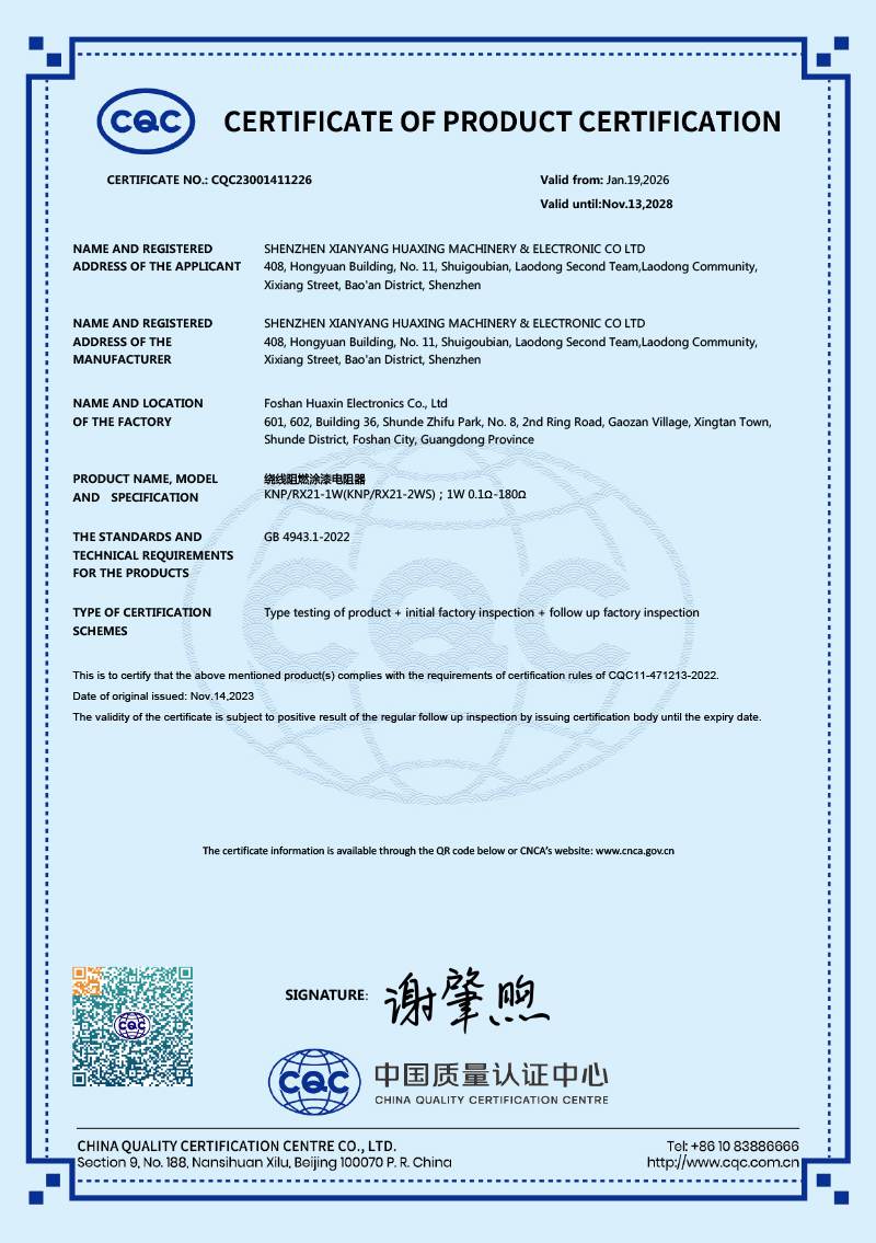 深圳市咸阳华星机电有限公司Shenzhen Xianyang Huaxing Electromechanical Co., Ltd.